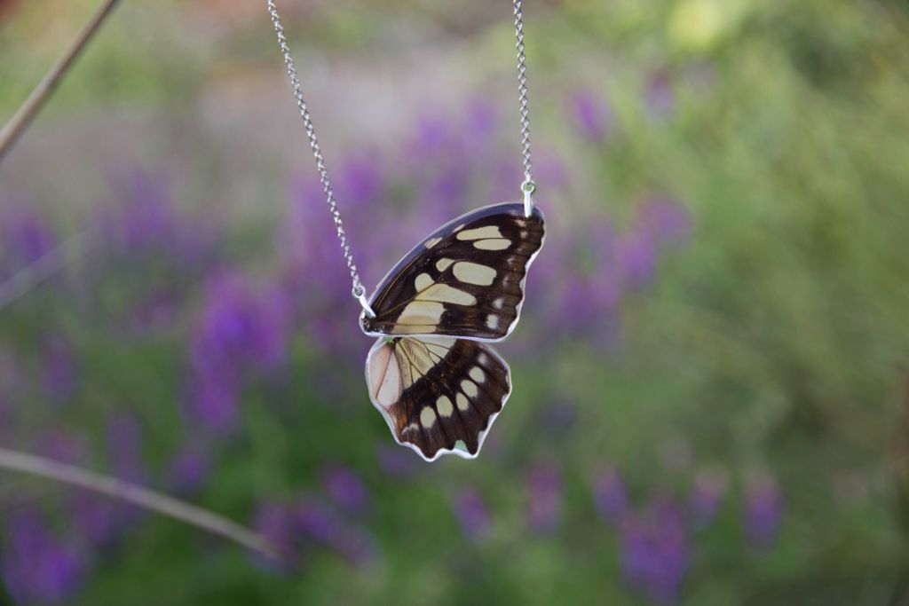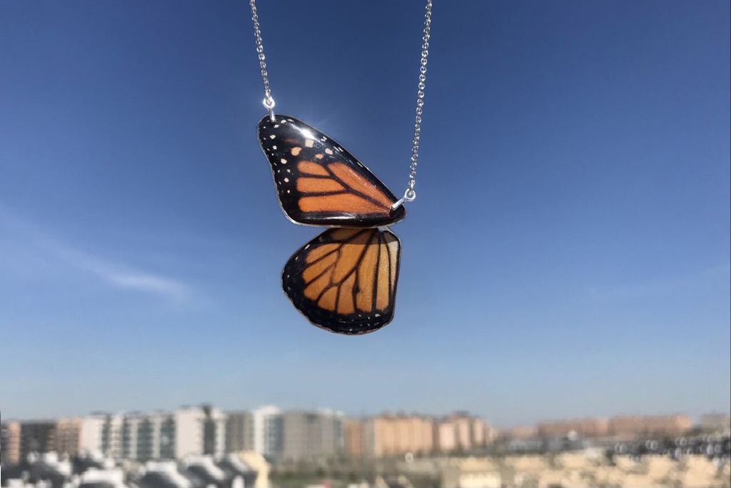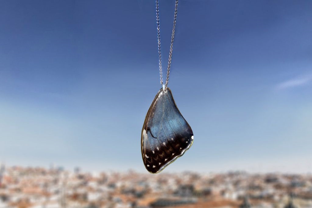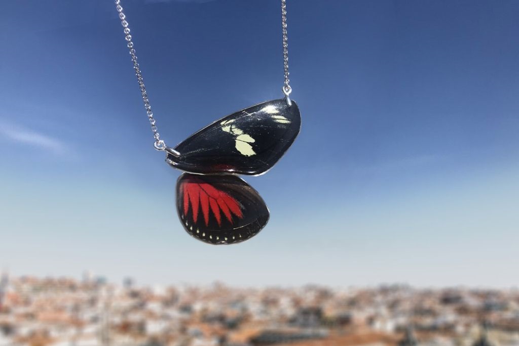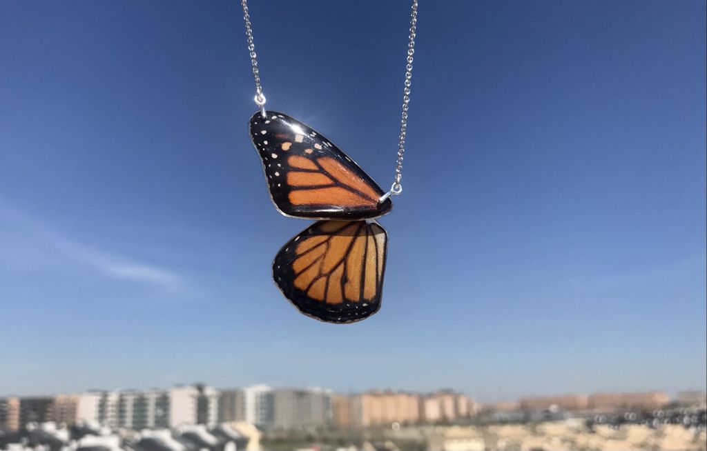 Joyas hechas con alas de mariposa verdaderas y NO las hemos matado. Lo que hay detrás de estas piezas es una historia de colaboración entre Mushosmusuk y Coloretas. Joyas únicas para una colección que la hemos llamado "Tú y Yo". Dos partes de la misma mariposa para compartir entre dos personas especiales o para uno mismo.